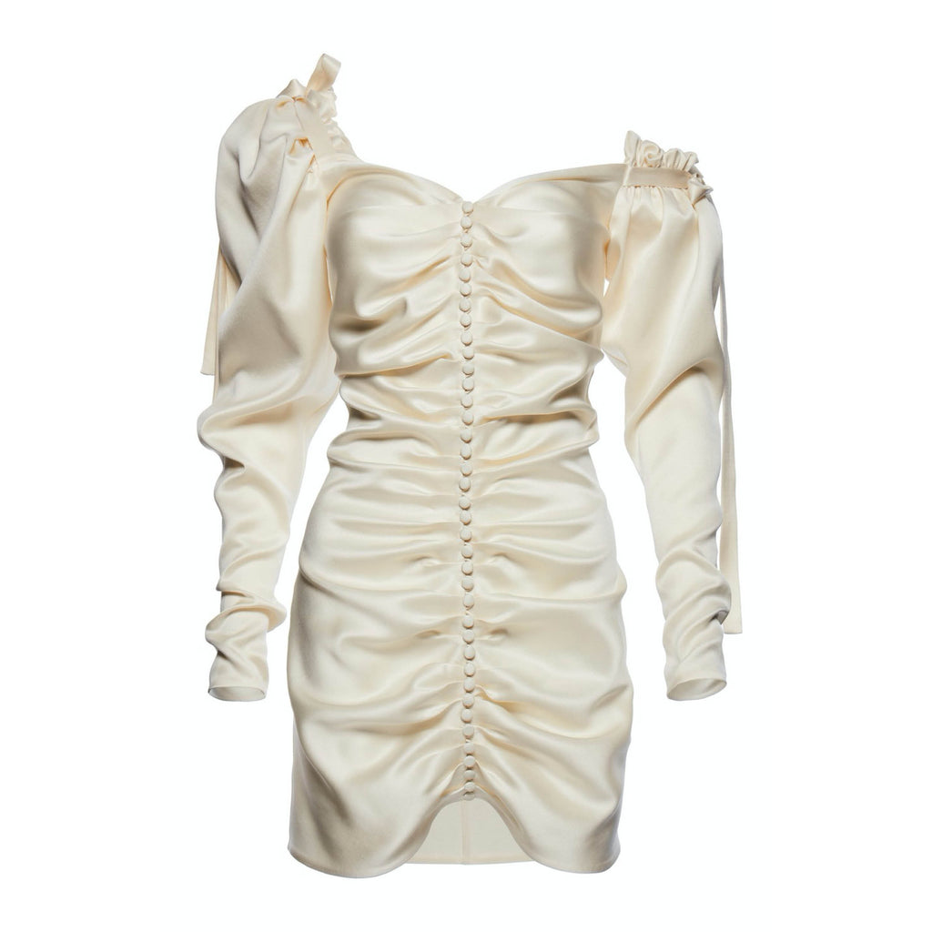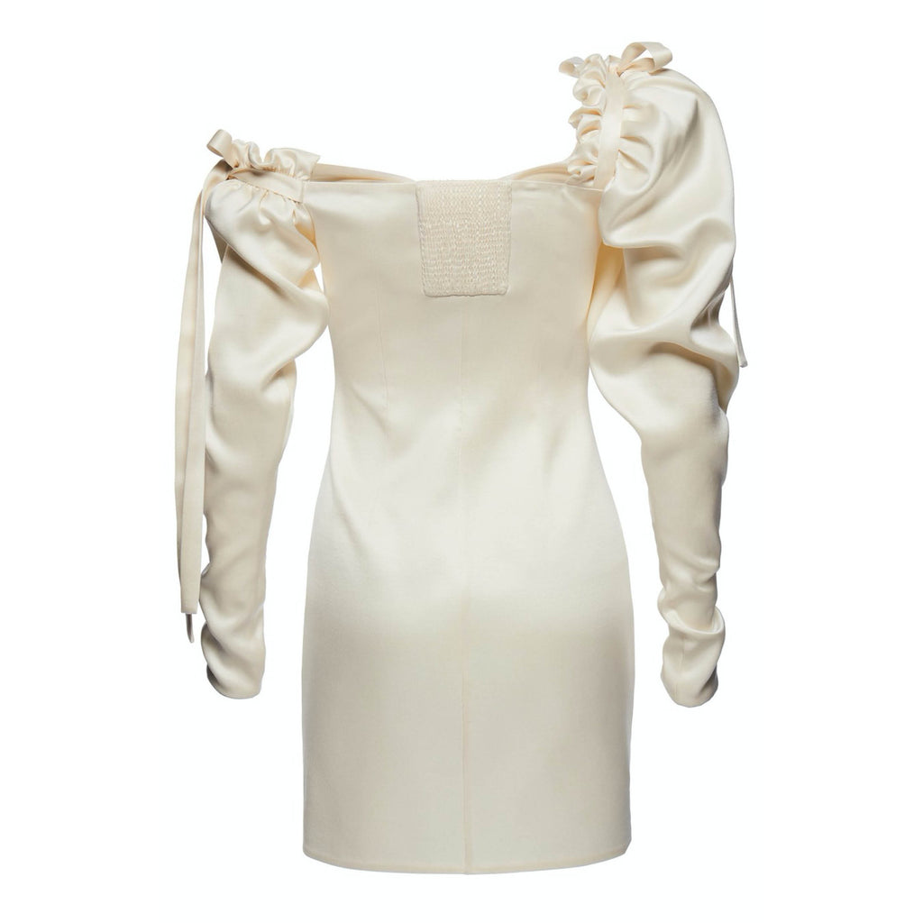 Beige Silk Feather Mini Dress