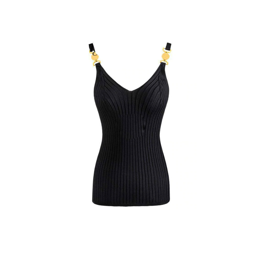 Black & Gold Shoulder Detail Knitted Tank TopOne size fits most